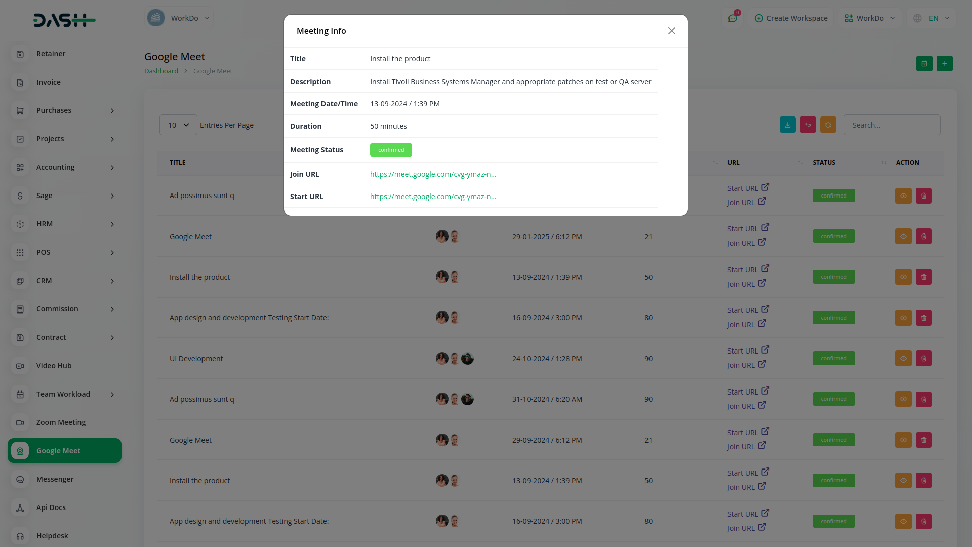 Discover the seamless collaboration of Workdo-Dash, where productivity meets innovation. Integrated with Google Meet, our platform transforms teamwork, allowing real-time collaboration and efficient meetings. Elevate your productivity and streamline your work processes with Workdo-Dash – where work meets innovation effortlessly.