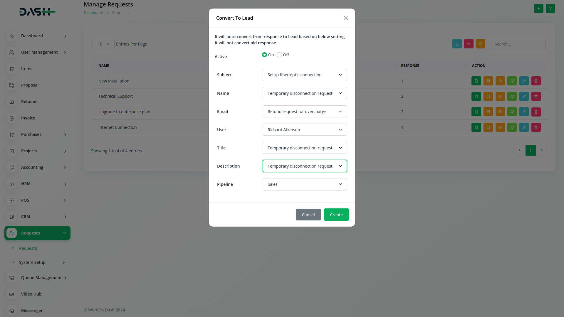In the Actions section of the platform, you all find numerous features designed to enhance your workflow. You can quickly copy the request link, edit or view form fields, review responses, and convert requests into leads or CRM entries with ease. When you transform a request into a lead, all details are seamlessly moved to the lead column. Alternatively, converting it into a CRM entry allows for straightforward form completion directly from the front end. Additionally, you have the option to rename the form to suit your preferences, providing added flexibility.